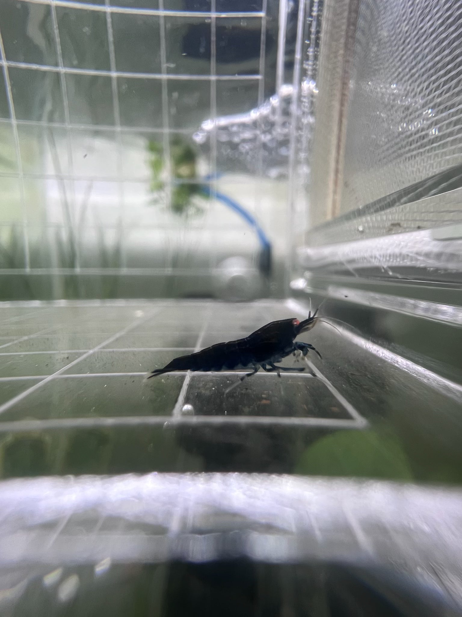 Diet: Biofilm, specialized shrimp foods, blanched veggies